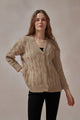 Bust: Measure around the fullest part of your chest. Waist: Measure around the narrowest part of your waist. Hips: Measure around the fullest part of your hips.Isolde Gray Cable Knit Cardigan