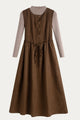 Brown Corduroy Pinafore Dress with White Ribbed Turtleneck Sweater Set