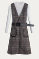 Plaid Pinafore Dress with Ribbed Turtleneck Sweater Set