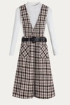 Plaid Sleeveless Belted Dress with White Turtleneck Sweater Set