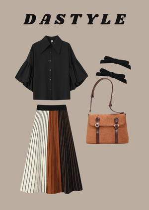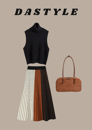 The Ella A-Line Knitted Pleated Skirt is a vintage-inspired piece that combines modern design with classic elements. Featuring a color contrast design and an elastic waist for comfort, this skirt is perfect for adding a touch of retro charm to any outfit. Its A-line shape and pleated details make it a versatile and stylish addition to any wardrobe.