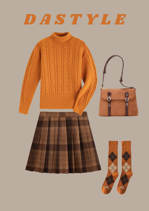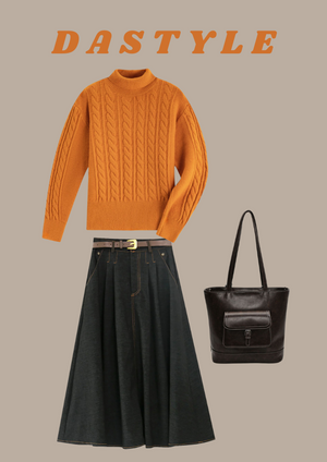 Orange Color Turtlneck Cable Knit Sweater